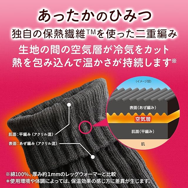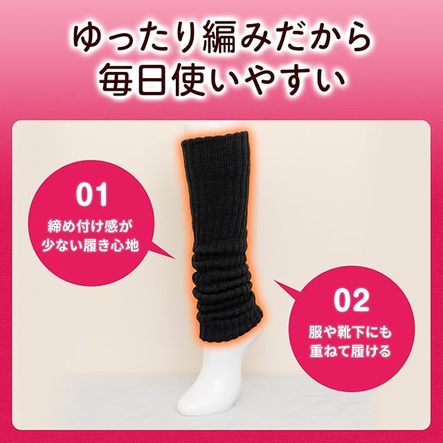 ゆったり二重編み構造になっている足冷え用レッグウォーマー