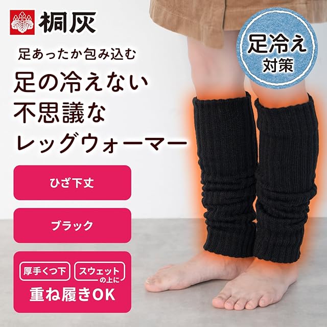 不思議なくつ下 桐灰 足の冷えない不思議な レッグウォーマー 厚手 くつ下 スウェット の上に重ね履きできる フリーサイズ 黒色 ひざ下丈 冷え対策 小林製薬