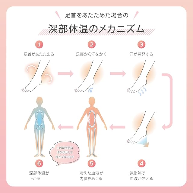 長さはふくらはぎ~かかと迄のタイプ。足首をあたため足の裏から体温を放熱 かかとがあるのでズレにくい。