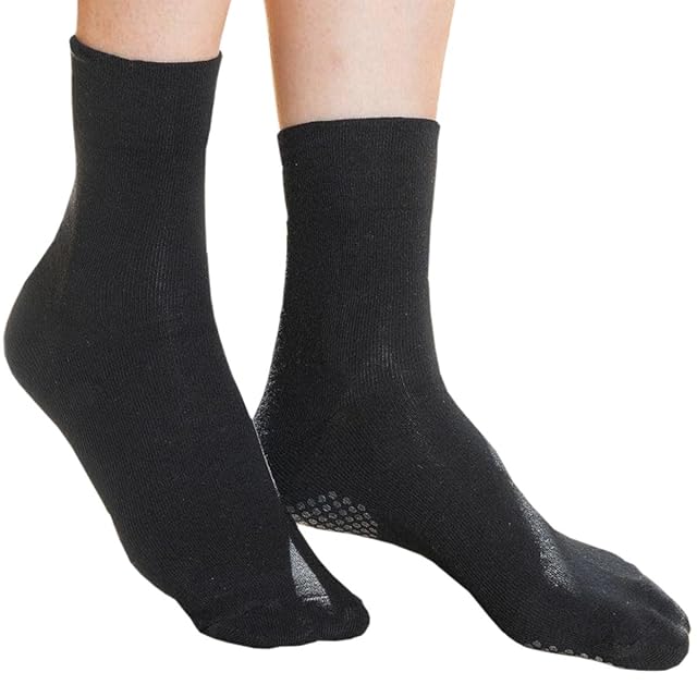岩盤浴 綿100% 足首ゆったり 靴下 男女兼用 (ブラック) 2602-K-A