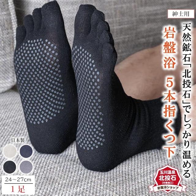 【商品概要】 色:グレー、24~27cm 男性用 靴下 新品 遠赤外線、加工部:北投石を練り込み加工、