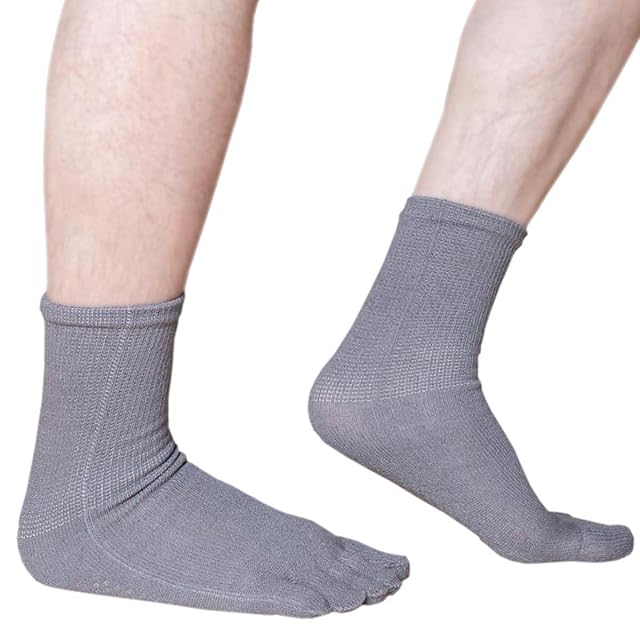 [ 健まーる] 岩盤浴 シルク 5本指 メンズ 靴下 (グレー) 2604-L-B