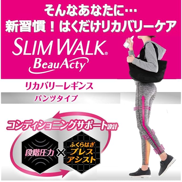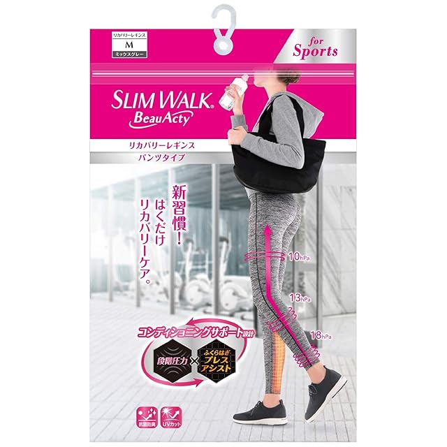 スリムウォーク 着圧レギンス ビューアクティ (Beau-Acty) リカバリーレギンス M ミックス グレー 着圧 レギンス スポーツ