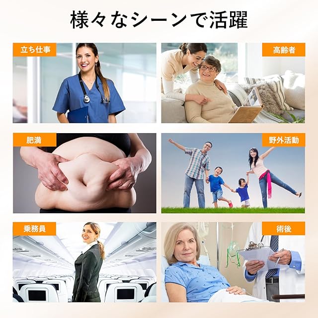【普段使いにもおすすめ】着圧レッグウェアを履くだけで、美脚ケアと脚のスッキリ感をサポート。仕事中や日常使いにも最適です。特に、調理師・美容師・教師・主婦・医師・看護師・販売員・営業職・警備員・建設業など、長時間の立ち仕事や座り作業の多い方におすすめの弾性ストッキングです。