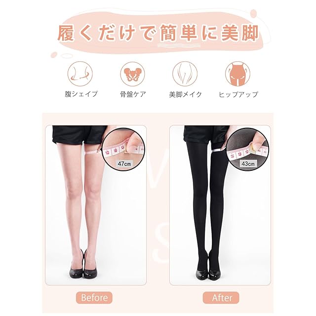 【シェイプアップを日常生活に】シェイプアップを日常生活に溶け込むように、スポーツウェアによく使われる素材を採用して(ナイロン+スパンデックス)、伸縮性をアップさせ、銀イオンを生地に配合して防臭が実現。また、膝と股関節を必要以上に締め付けず、長時間履き続けるように工夫しています。