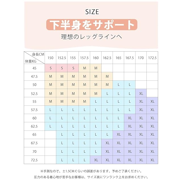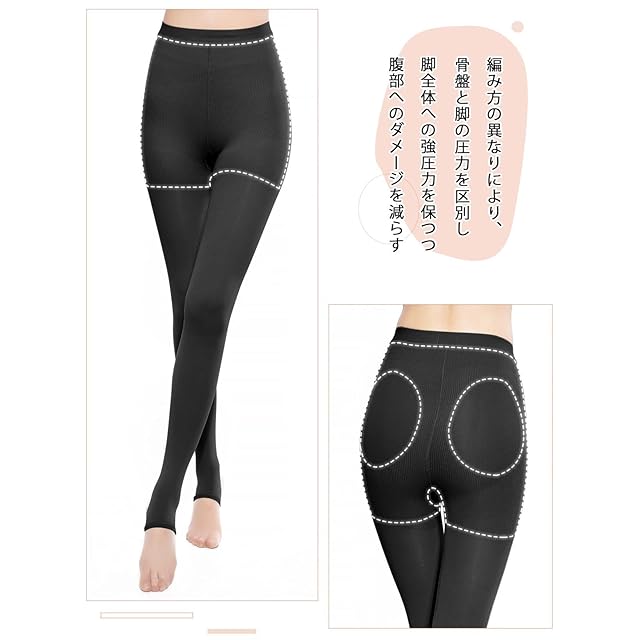 【下半身を形を整え】腹部のストレスを軽減するために、編み方を変えることで脚の圧力と腹部の圧力を区別しました。腹部に適当な圧力でお腹のたるみを引き締めて骨盤をサポート。腹部の圧力を減らすことで就寝中も長時間履けるようになりました。