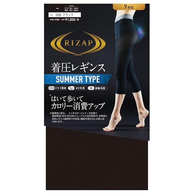 [グンゼ] 着圧レギンス RIZAP サマータイプ はいて歩いてカロリー消費アップ 夏用 接触冷感 7分丈 レディース ブラック L-LL