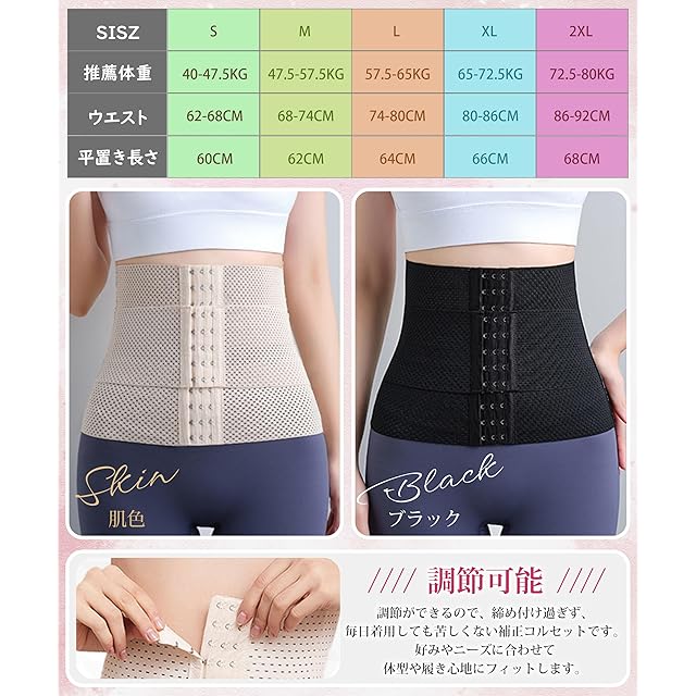 【快適な着用感・調節可能】 コルセットは、軽くて柔らかい生地を採用し、心地よい肌触り感、夏場でも肌にベタベタしないです。全てのシルエットにもフィットしています。長時間の着用でも快適に過ごせます。調節ができるので、締め付け過ぎず、毎日着用しても苦しくない補正コルセットです。好みやニーズに合わせて体型や履き心地にフィットします。ウエストニッパーに使い続けることで、女性のウエストや腹部の重要な部分を健康的に保つことができます。