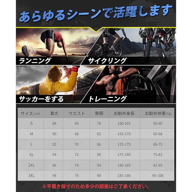 【あらゆるシーンで活躍します!】 このコンプレッションタイツは、優れた通気性と吸汗速乾性、快適な着用感、効果的な圧縮疲労回復機能、高い伸縮性と耐久性により、あらゆる生活シーンに容易に対応することができます。