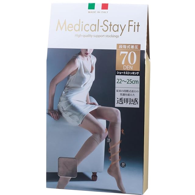 着圧 弾性 ストッキング ほっそり美脚 メディカル ステイフィット 着圧ひざ丈 ショート ストッキング 70デニール 22-25cm ヌーディーベージュ イタリア製 Medical-Stay Fit 透明感 素肌感 レディース 靴下 細みえ 美脚 履くだけ (02134)