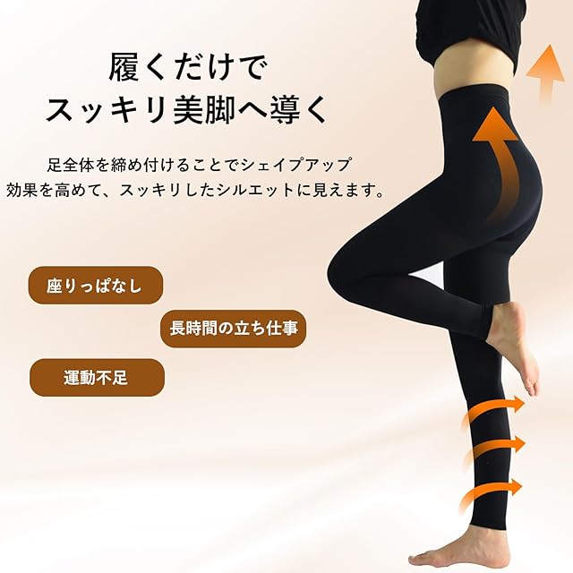 【普段使いにもおすすめ】着圧レッグウェアを履くだけで、美脚ケアと脚のスッキリ感をサポート。仕事中や日常使いにも最適です。特に、調理師・美容師・教師・主婦・医師・看護師・販売員・営業職・警備員・建設業など、長時間の立ち仕事や座り作業の多い方におすすめの弾性ストッキングです。