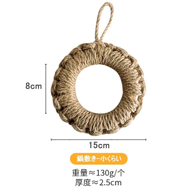 【商品仕様】サイズ:外径約15cm 内径約8cm,重さは約130gで,厚さ約2〜4cm,素材:亜麻草。