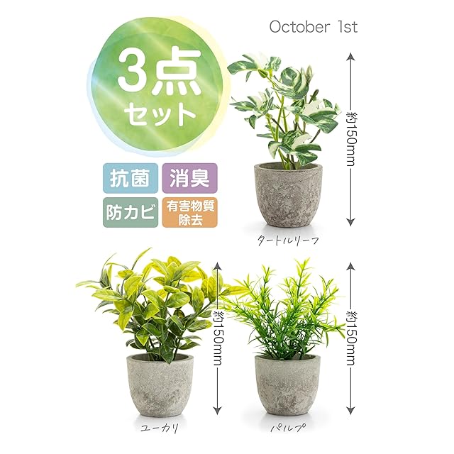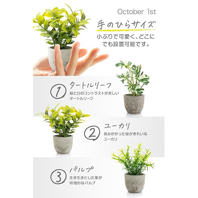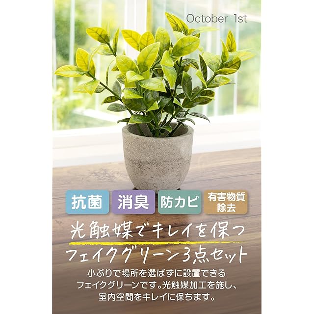 October1st フェイクグリーン 観葉植物 人工 3点セット 卓上用 光触媒加工 造花 インテリア 小物 ミニ indoor plants 人工植物 fake plant おしゃれ 緑 水やり不要 贈り物 ギフト 母の日 父の日 プレゼント