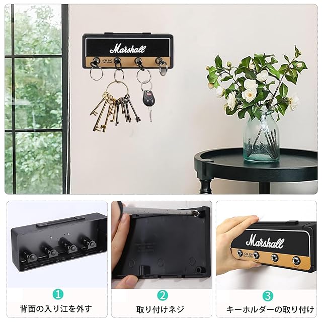 【ユニークなデザイン】アンプ型キーハンガーは、キーホルダーをなくしがちな人、音楽、ギター好きにおススメ。ユニークでモダンなデザイン、芸術的な雰囲気、エレガントでファッショナブルです。 キーホルダーについたジャックを本体のキーハンガーに差し込んでお洒落に収納。