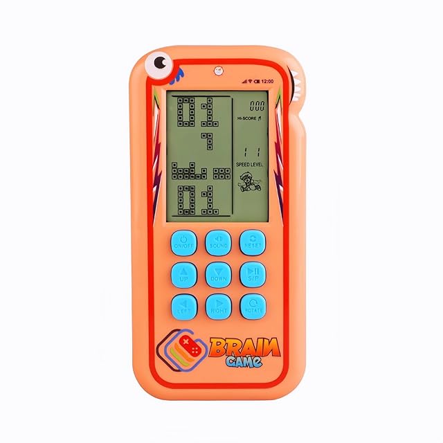 TAQY かわいいブロックゲームコンソール 2500以上のレベル 電子ゲーム レンガ/レーシング/タンク レトロポケットゲームコンソール 屋内/屋外/旅行用 ハンドヘルドゲームデバイス 充電式 子供用ギフト パズルおもちゃ (オレンジ)