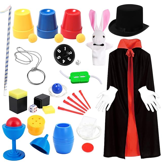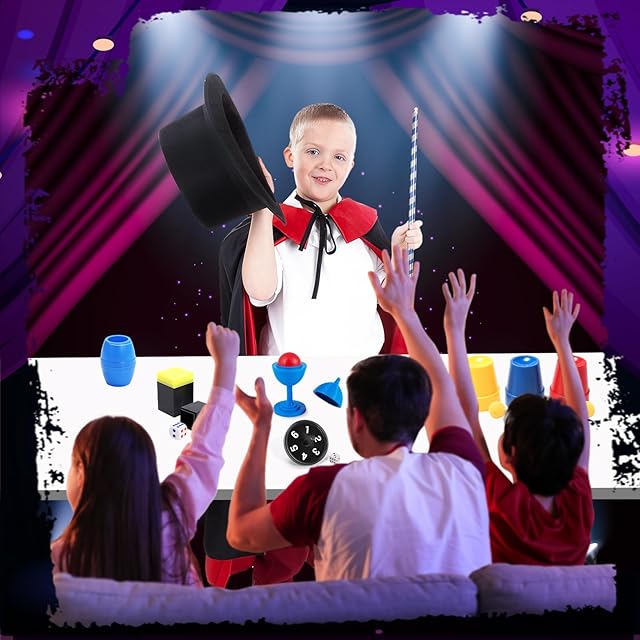 このマジックセットには12種類のマジックグッズが含まれており、マジックリンク、予言独楽、切れないロープ、マジック帽子などが含まれています。マジック衣装と手袋が付属しており、子供たちは魔法使いのような臨場感を味わうことができます。このセットは、独創的なトリックを楽しみながら、創造力を刺激し、手先を器用に使う力を育むことができます。説明書やビデオ解説が付属しており、初心者や子供たちでもマジックを簡単に学ぶことができます。このマジックセットは、友達や家族とのマジックショー、誕生日パーティー、集まりなど様々な場面で活躍する楽しみな遊び道具です。また、クリスマスや誕生日のプレゼントとして、子供たちが学校や幼稚園の発表会やお祭りに向けて練習をするときのモチベーションアップのための贈り物に最適です。