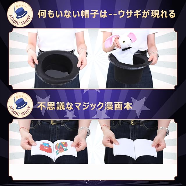 【マジック衣装と帽子付き】 このマジックセットには、マジック衣装と帽子が付属しています。子供たちは、魔法の魅力を身近に感じることができ、まるで自分が魔法使いになったかのような臨場感を味わうことができます。