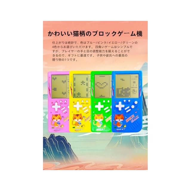 商品名:TAQY かわいい猫柄ブロックゲームコンソール 23 レンガゲーム レーシング/戦車戦 レトロ ミニゲーム機 子供用ゲーム機 70/80/90 年代 ノスタルジックなギフト パズルおもちゃ ハンドヘルド ポータブルゲーム機 (Green)