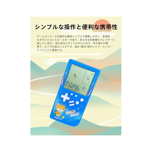 かわいい猫柄のブロックゲーム機。 仕上がりは絶妙で、色はブルー/ピンク/イエロー/グリーンの4色からお選びいただけます。 四角いゲームはシンプルですが、プレイヤーの手と目の調整能力を鍛えることができるので、ギフトに最適です。 子供や彼氏への最高の贈り物の1つです。