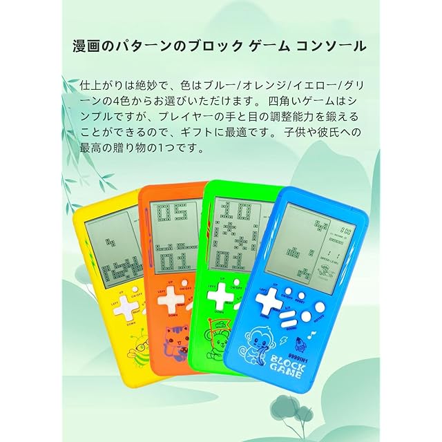 かわいい漫画のパターンのブロックゲームコンソール。 仕上がりは絶妙で、色はブルー/オレンジ/イエロー/グリーンの4色からお選びいただけます。 四角いゲームはシンプルですが、プレイヤーの手と目の調整能力を鍛えることができるので、ギフトに最適です。 子供や彼氏への最高の贈り物の1つです。