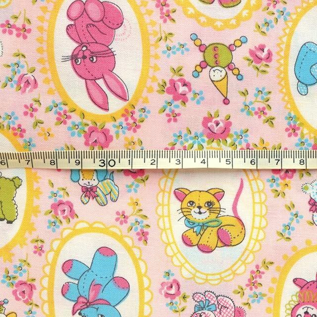 日本紐釦貿易(Nippon Chuko) レトロファンシーアニマル柄 プリント生地 布 ピンク 巾約110cm×1m切売カット ANIMAL-PI-1M 生地 プリント生地 アニマル柄生地