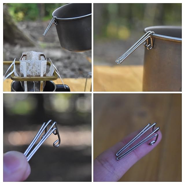 マグカップやケトルなどに挟んでドリップすることから Driclip(ドリクリップ)と命名しました。Drip(滴る=注いで抽出する)にClip(ものを挟む)をあわせた造語になります。【キャンプ・登山】 チタンマグ、クッカーなどを簡易コーヒードリップポットに! 道具の軽量化が実現します! ※コーヒー専用ケトルを持って行かなくても大丈夫です。 登山ではコンパクト・軽量が必須ですので、たった1gで本格的なコーヒーが楽しめます。 【使用可能】 【スノーピーク】 チタンマグ300 450 トラック900 アルミパーソナルクッカーセット SCS-004TR JETBOILフラッシュ JETBOILミニモ エバニュー チタンカップ デミタスカップ 各メーカーのチタンマグ などで装着できます。 マグカップやケトルなどに挟んでドリップすることから Driclip(ドリクリップ)と命名しました。 Drip(滴る=注いで抽出する)にClip(ものを挟む)をあわせた造語になります。
