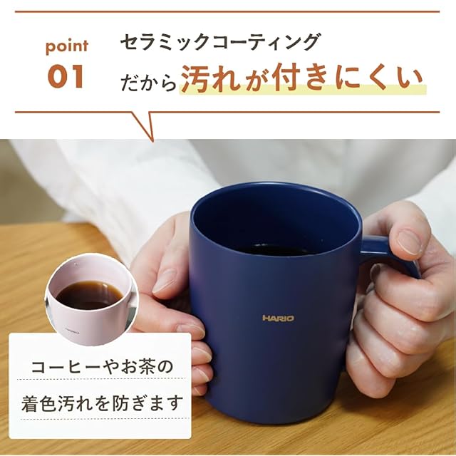 セラミックコーティングにより、ステンレス製ながら陶器のような滑らかな口当たり。 お茶やコーヒーの味わいを邪魔しません。 茶渋などの汚れが落ちやすく、お手入れが簡単です。