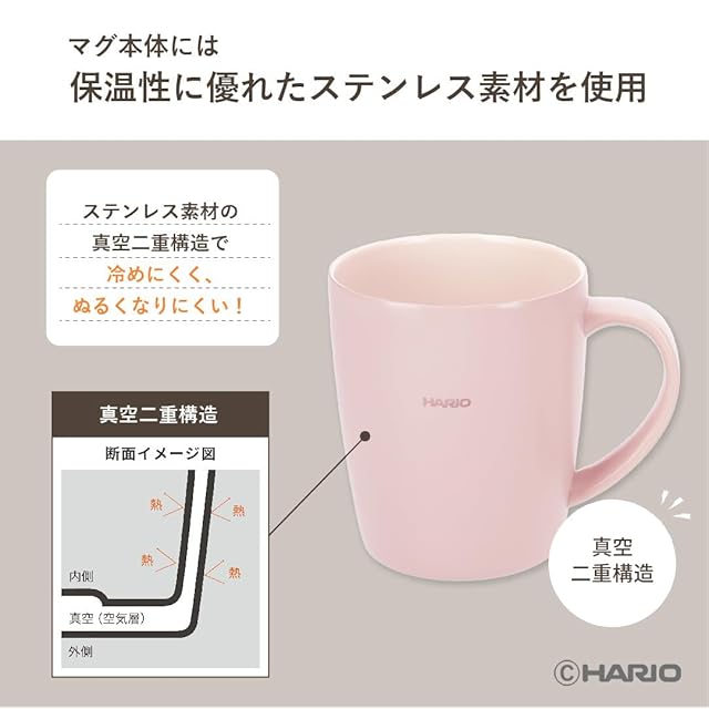 真空断熱構造なので美味しい温度を長時間キープ。 また、冷たい飲み物を入れても結露しにくい。