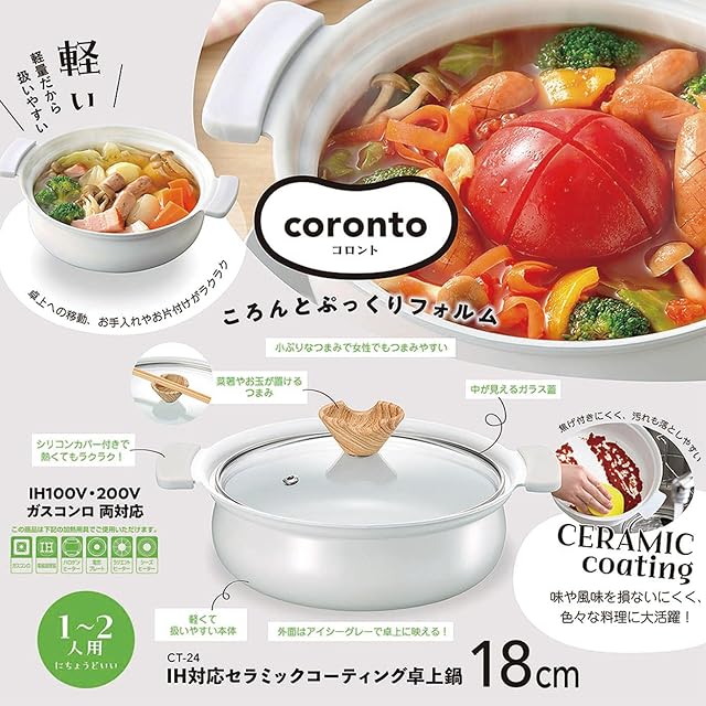 商品名:カクセー IH対応 セラミックコーティング 卓上鍋 18cm グレー coronto コロント CT-24