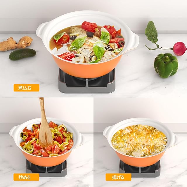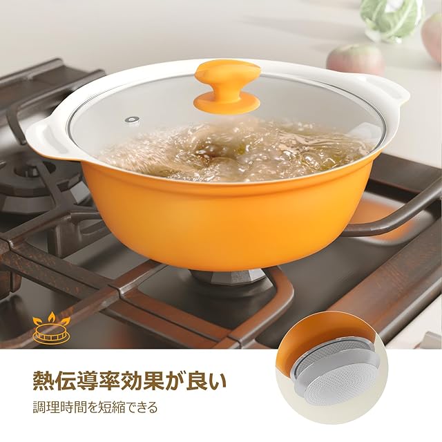 商品名:COOKSMARK 鍋IH対応 両手鍋 26cm IH対応オール熱源対応 ガラス鍋蓋付セラミックコーティング 割れない土鍋 菜箸やお玉が置ける オレンジ