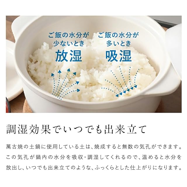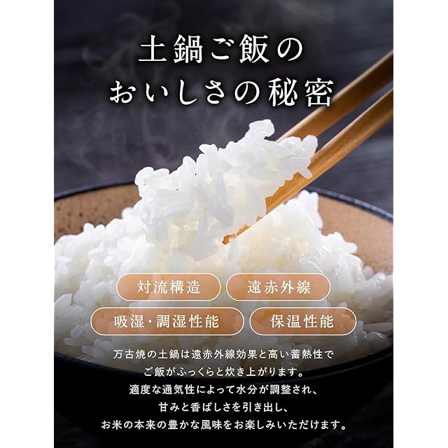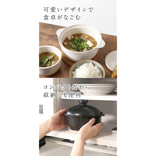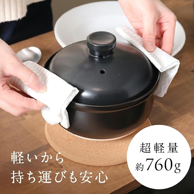 女性でも取り扱いやすいかわいい『超軽量』1~2人にぴったりの土鍋。一人用にぴったりのごはん鍋にも。 直火:対応 電子レンジ:対応 大きさ:5号 (1人用~2人用) 日本製・国産の中でも人気の萬古焼の土鍋。 小型で軽量でも、炊飯器代わりにもなって、ご飯鍋としても活躍。 直火で炊けて、電子レンジで温め直して、ふっくらごはん。 素朴な質感とフォルムで愛着の枠デザイン。 万古焼特有の土感のある質感と、機能性を持ち合わせた優れもの。 対流構造・遠赤外線・吸湿/調湿性能・保温性能と、考え抜かれた陶器のご飯鍋は、「これぞ、ごはん鍋で炊いた旨味・おいしさ」と唸らせる秘訣。 高い保温性、故の、おひつとしての機能も持ち合わせ、電子レンジ対応だからこそ、翌日、ふっくら温め直して、まるで炊き立てのおいしさ。 ぜひ、ご家庭の食卓で、旅館の朝食で出るような、土鍋で炊いたご飯をご堪能下さいませ。