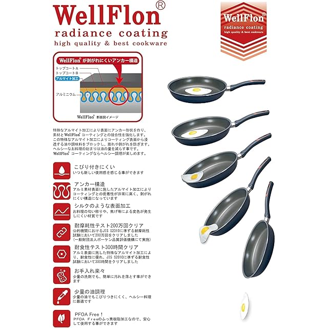 素材・材質:(本体)アルミニウム合金、(底面)鉄・アルミニウム溶射加工、(内面)フッ素樹脂塗膜加工、(外面)セラミック塗装、(取っ手)フェノール樹脂
