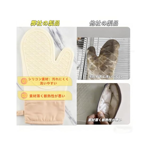 商品名:耐熱ミトン 鍋つかみ オフホワイト オーブンミトン シリコン 300℃耐熱 滑り止め 防水 シリコン製 ケーキを焼く バーベキュー用 クッキング用 鍋料理 両手セット ミトン2枚 鍋敷き1枚(グレー)