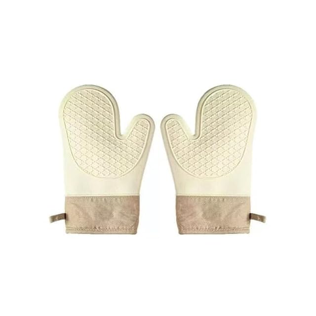 鍋つかみ 2枚セット 耐熱ミトン オーブンミトン 300℃耐熱 やけど防止 防水 滑り止め 左右兼用 耐久性 吊り下げ式 収納に便利 電子レンジ オーブンレンジ ケーキを焼く 調理、 鍋料理 ホームベーカリー オーブン料理 グリル(ベージュ)Frenflu