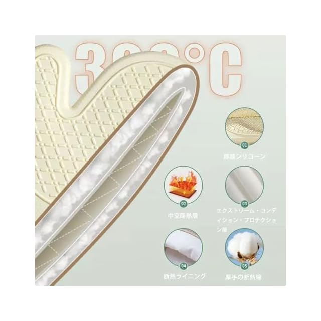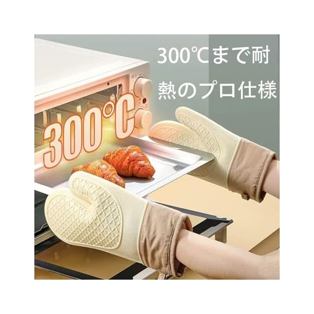 商品名:鍋つかみ 2枚セット 耐熱ミトン オーブンミトン 300℃耐熱 やけど防止 防水 滑り止め 左右兼用 耐久性 吊り下げ式 収納に便利 電子レンジ オーブンレンジ ケーキを焼く 調理、 鍋料理 ホームベーカリー オーブン料理 グリル(ベージュ)Frenflu