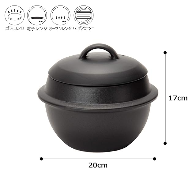 商品名:TAMAKI 土鍋 炊飯鍋 サーマクラフト 2合用 ブラック 直径21×高さ18cm 直火・電子レンジ・オーブン対応 T-789551