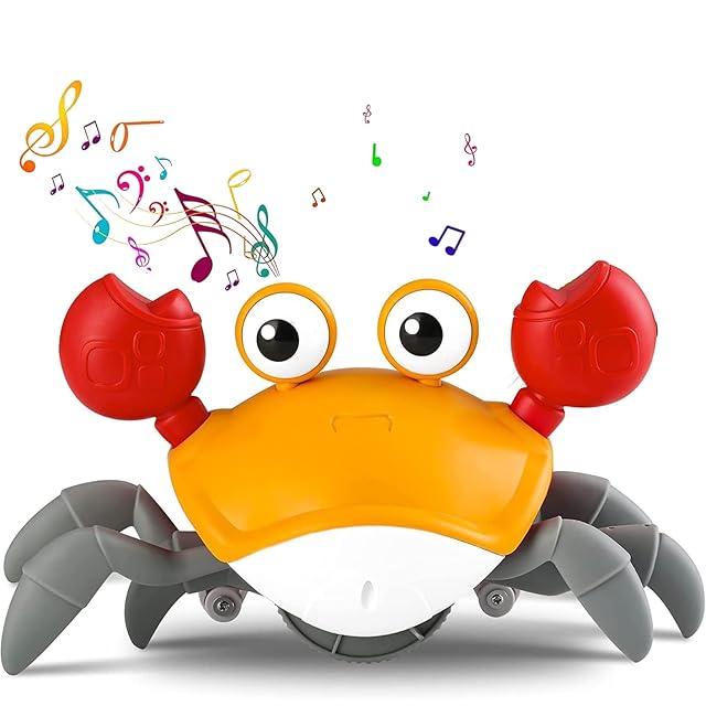 ✅【ミュージカルカニのおもちゃ】-LEDライトアップクロール&センサー障害物回避機能のための超クール、移動中に障害物に遭遇すると、時間内に反対方向に移動します。光と音楽はそれを子供たちにとって非常に魅力的にします。注:このおもちゃを水や湿気の多い環境で使用しないでください。