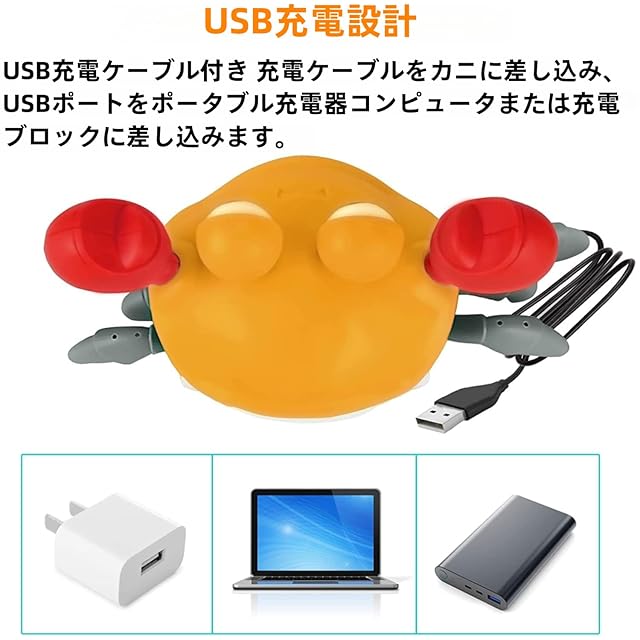 ✅【USB充電】電子音楽カニおもちゃは3.7 Vリチウム電池で電力を供給し、2時間の充電時間は20〜30分の連続使用できます。USBケーブル付きで、USB充電器、パソコン、電源ボックスなどで充電するのはとても便利です。充電中におもちゃを閉じることを確認します。