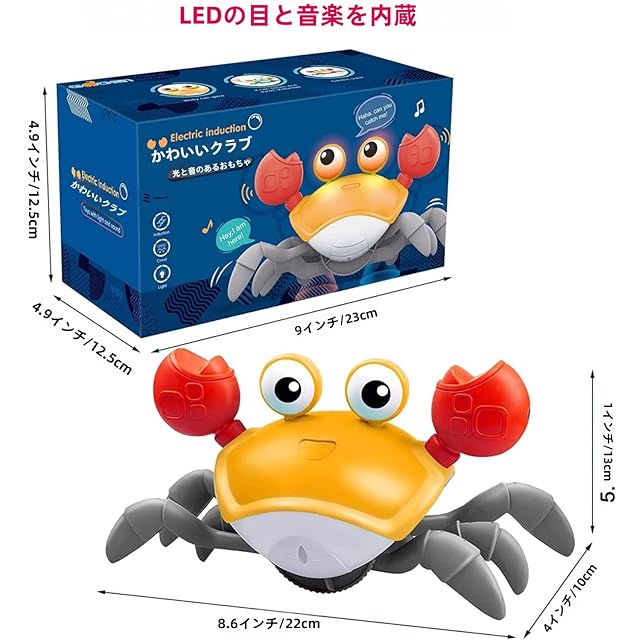 商品名:カニ おもちゃ 動く 子供向け、音楽這うカニ、自動的に障害物を回避する、インタラクティブな学習と開発、LEDライト付き、USB充電式 知育玩具