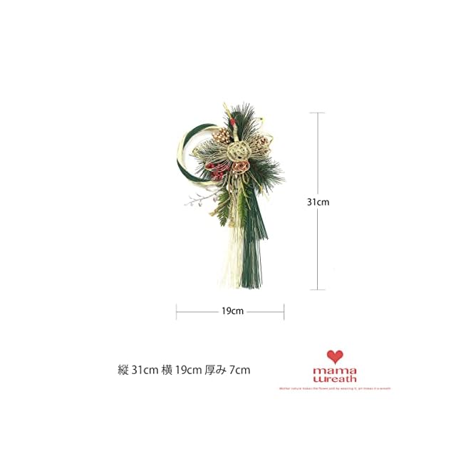 [ 2026年 mamawreath しめ縄 ]鶴 つる 正月飾り 玄関 玄関用 しめ縄 お正月リース 松 サイズ 水引 グリーン ゴールド 縦 31cm 横 19cm 厚み 7cm YHSK4445 (グリーンゴールド)