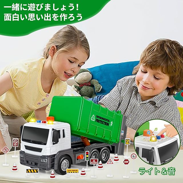 【子供への最高のプレゼント】シミュレーション性の高いゴミ収集車のおもちゃは、ごっこ遊びや楽しみが好きな子供たちへの素晴らしいプレゼントです。ハロウィン、正月、クリスマス、誕生日、子供の日など、子供にプレゼントとして贈って最高です。