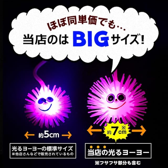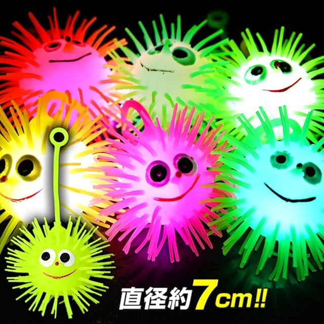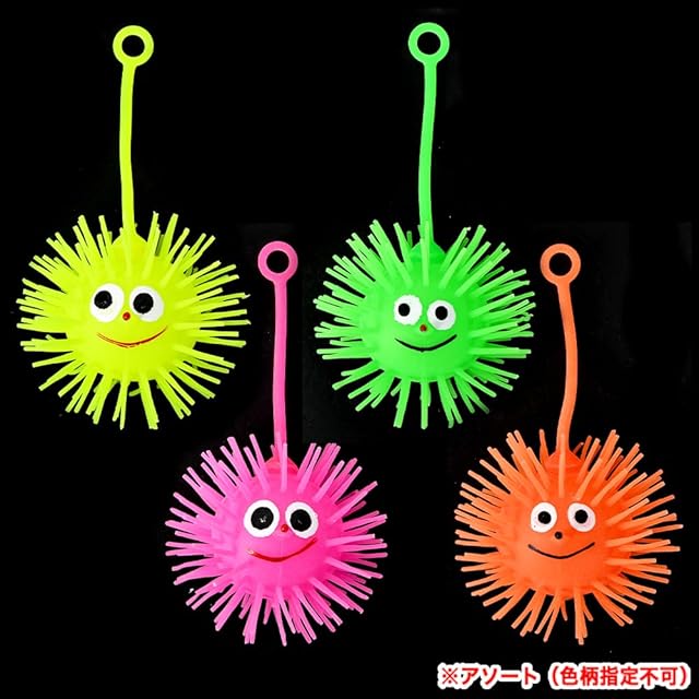 びよーん!伸びて光ってかわいいポンポンヨーヨー 衝撃を与えると、カラフルに光ってかわいい! おまつりやイベントなどの景品にオススメ!