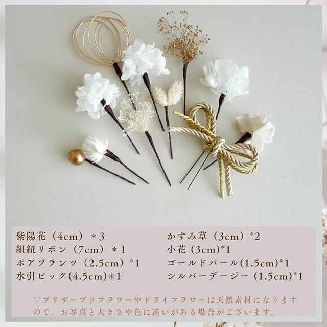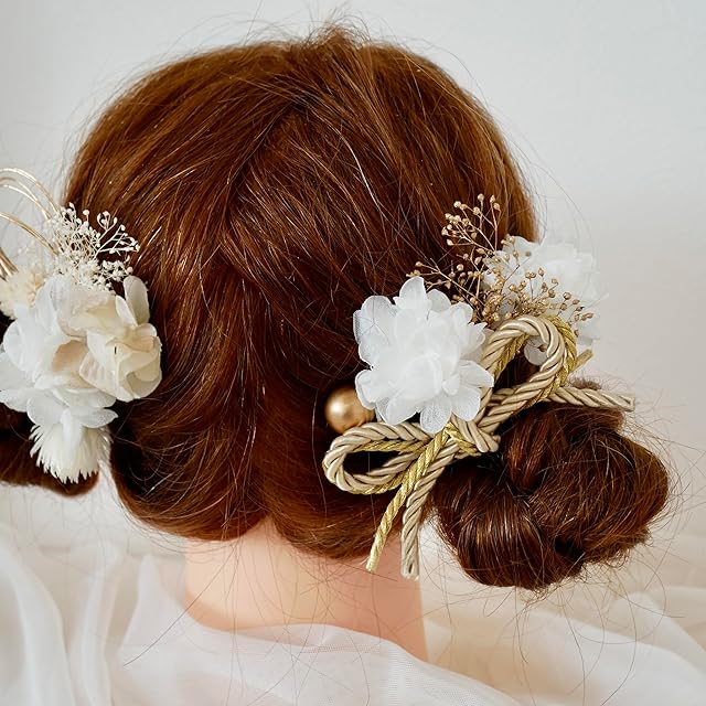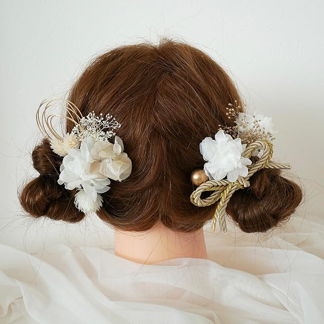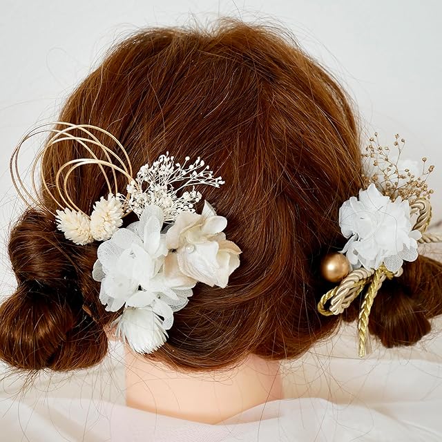 お子さまの和装着物、ドレス、七五三など、幅広くご利用いただけます。 全て1本1本ピックタイプでお作りしておりますので お好きなデザインでヘアアレンジしていただけます。 素材は、造花とドライフラワーやプリザーブドフラワーをmixした髪飾りです。