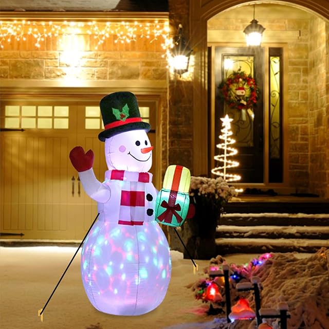 Ennbom 光る 雪だるま カボチャ サンタクロース ジンジャーブレッドマン 幽霊 LED付き 膨張式 クリスマス飾り クリスマス装飾品 ハロウィーン飾り エアー看板 (雪だるま)