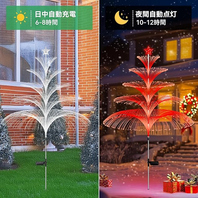 本クリスマス 飾りライトは噴水をモチーフにした5層構造のファイバーライトで、風に揺れる様子が優雅です。イルミネーションライトは高輝度LEDチップを内蔵し、7色の自動カラーチェンジ機能により、暗闇に七色の蓮が咲くような幻想的な光景を演出。クリスマスナイトを彩る輝きをお届けします。