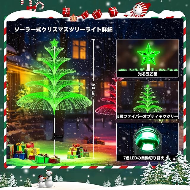 LETMY クリスマス 飾り 屋外 イルミネーション ソーラーライト 屋外 防水防雪IP65 led 七色変化 自働点灯消灯 高輝度 ガーデンライト ソーラー おしゃれ 庭/ガーデン/駐車場/ベランダ/歩道など対応 christmas lights クリスマスオーナメント