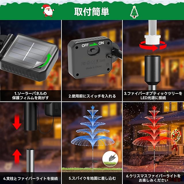 配線不要・工具不要の簡単設置。スイッチON後、ソーラーパネルの角度を調整し地面に挿すだけ。クリスマスや新年の庭園装飾はもちろん、日常のガーーデンライトとしても活用可能。洗練されたデザインは、大切な方への贈り物としても喜ばれます。