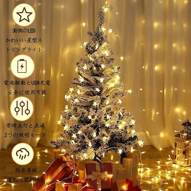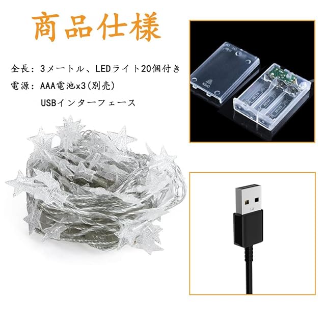 商品名:LEDイルミネーションライト 電飾3M 20個 フェアリーライト電飾led 可愛く 星型電飾 クリスマスオーナメント 屋内・屋外兼用 結婚式 誕生日 キャンプ用 パーティー電飾
