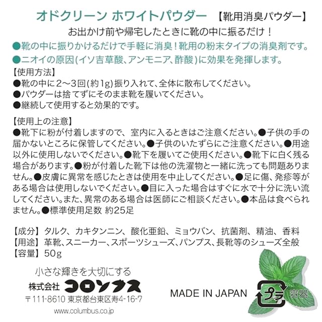 商品名:[コロンブス] 靴 消臭/抗菌 オドクリーン 靴消臭パウダー ペパーミントの香り