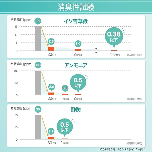 ニオイの原因となるイソ吉草酸、アンモニア、酢酸に効果を発揮します。